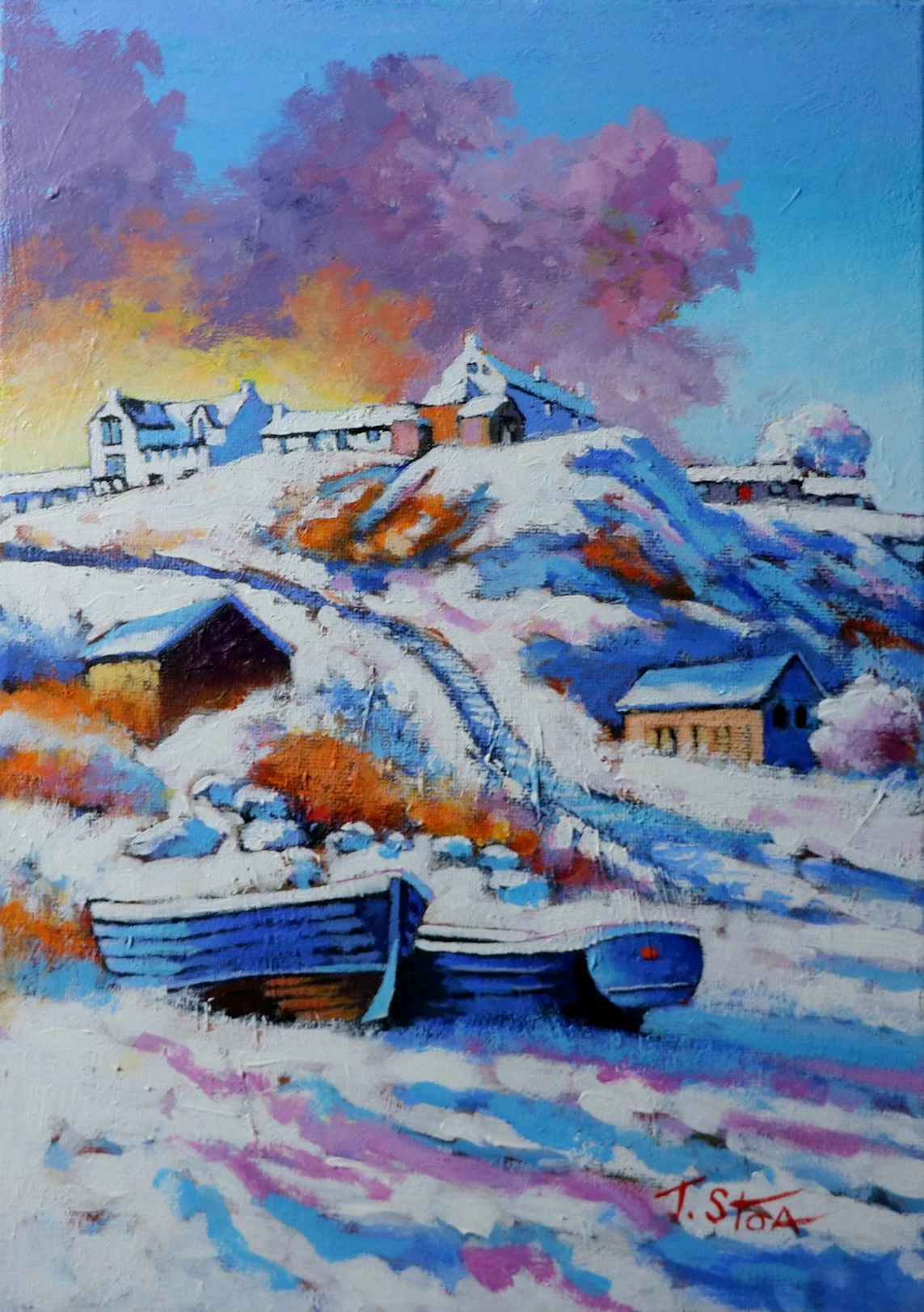 A painting gets signed when the artist completes his picture to the best of his knowledge and experience. However as time goes on we come across new ideas. As we come out of a miserable wet winter without any snow I feel I need colour to brighten up my studio, so paintings previously completed are getting a new lease of life with colour added.
